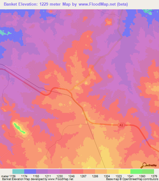 Note:Please note that Banket,Zimbabwe Elevation Map is in beta.