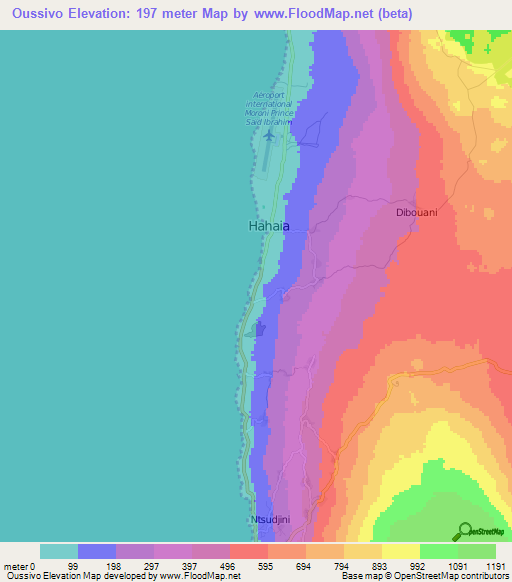 Note:Please note that Oussivo,Comoros Elevation Map is in beta.