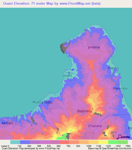 Note:Please note that Ouani,Comoros Elevation Map is in beta.