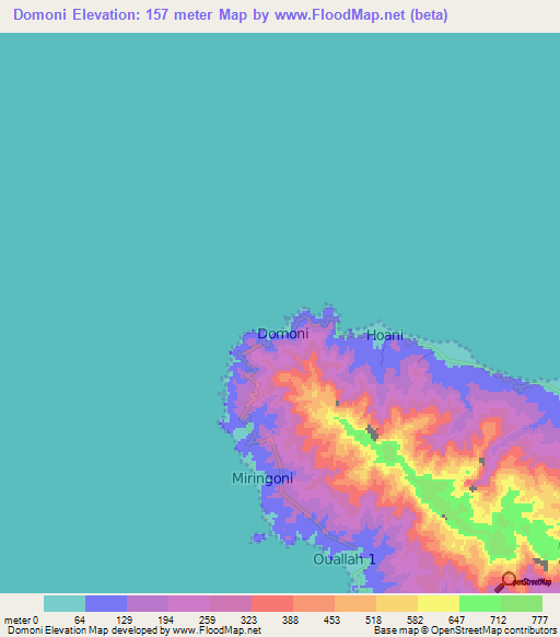 Note:Please note that Domoni,Comoros Elevation Map is in beta.