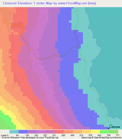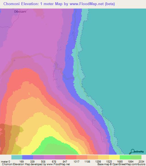 Note:Please note that Chomoni,Comoros Elevation Map is in beta.