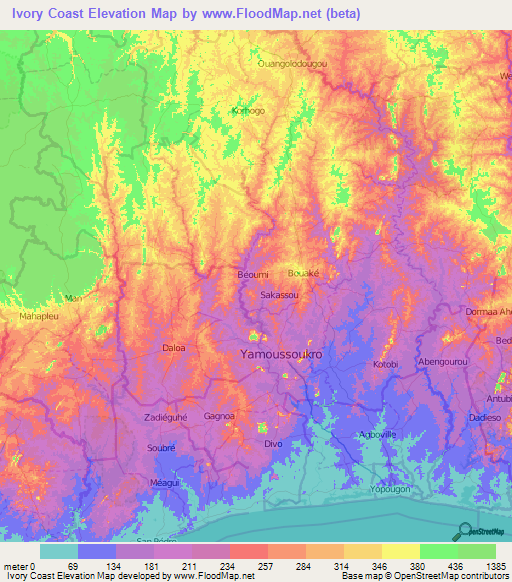 Note:Please note that Ivory Coast Elevation Map is in alpha.