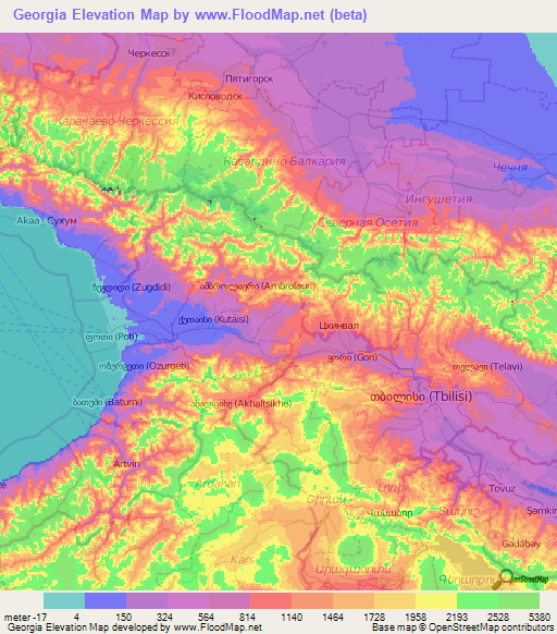 Note:Please note that Georgia Elevation Map is in alpha.