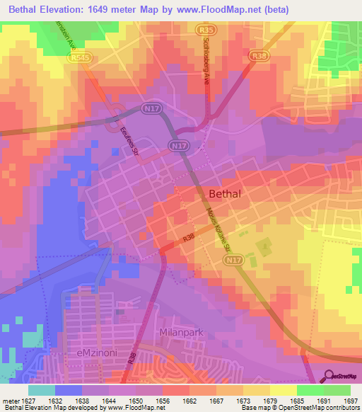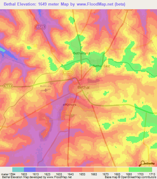 Note:Please note that Bethal,South Africa Elevation Map is in beta.