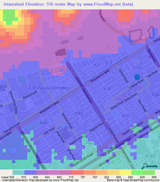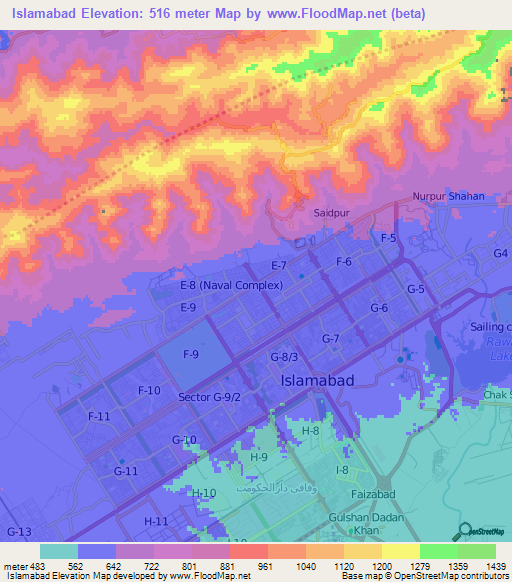 Note:Please note that Islamabad,Pakistan Elevation Map is in beta.
