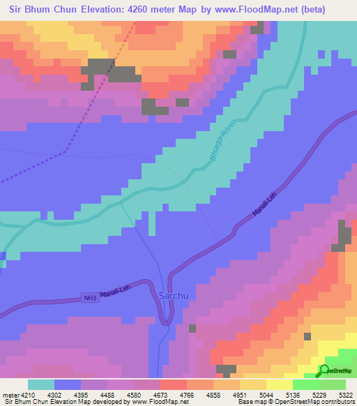 Note:Please note that Sir Bhum Chun,India Elevation Map is in beta.