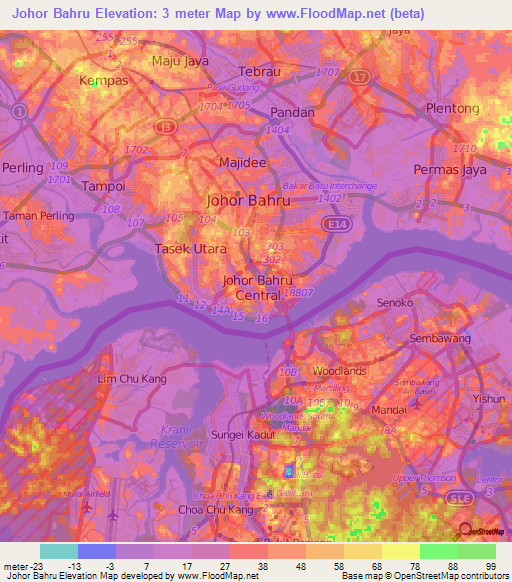 Note:Please note that Johor Bahru,Malaysia Elevation Map is in beta.
