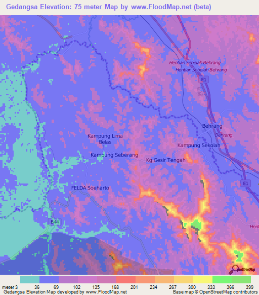 Note:Please note that Gedangsa,Malaysia Elevation Map is in beta.