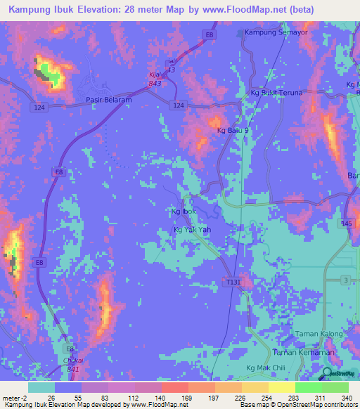 Note:Please note that Kampung Ibuk,Malaysia Elevation Map is in beta.