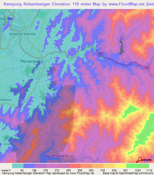 Note:Please note that Kampung Kebambangan,Malaysia Elevation Map is in beta.