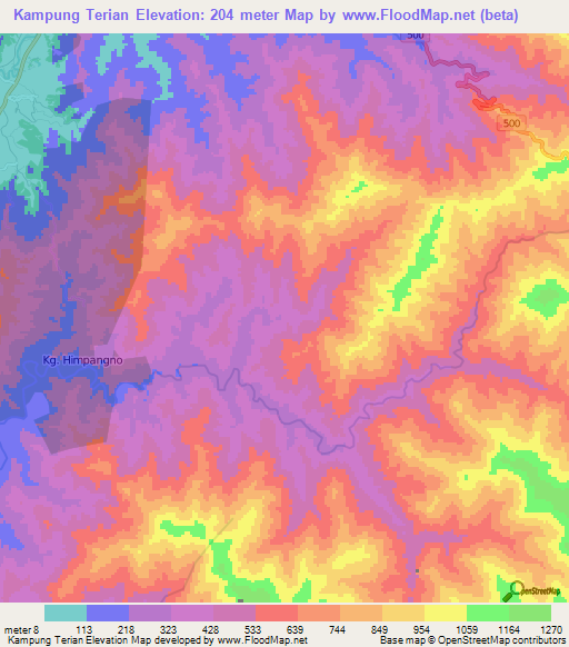 The maps also provides idea of topography and contour of Kampung Terian,Malaysia.