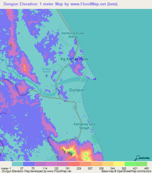 Note:Please note that Dungun,Malaysia Elevation Map is in beta.