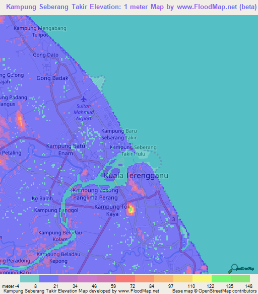 Note:Please note that Kampung Seberang Takir,Malaysia Elevation Map is in beta.