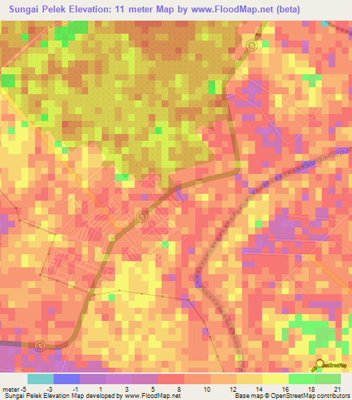 Below is the Elevation map of Sungai Pelek,Malaysia, which displays range of elevation with different colours.