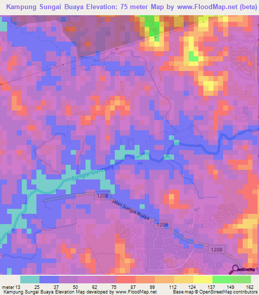Below is the Elevation map of Kampung Sungai Buaya,Malaysia, which displays range of elevation with different colours.