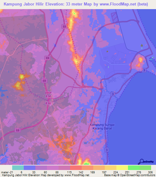 Note:Please note that Kampung Jabor Hilir,Malaysia Elevation Map is in beta.