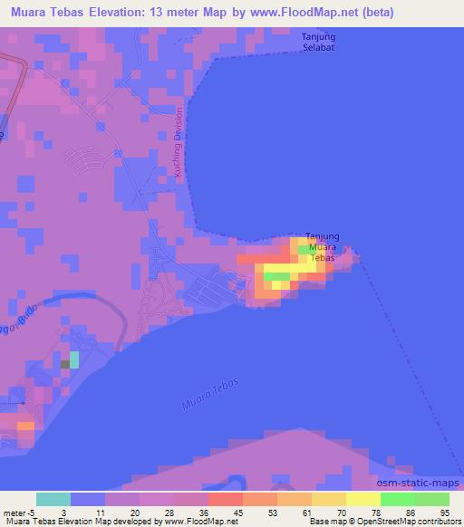 Note:Please note that Muara Tebas,Malaysia Elevation Map is in beta.