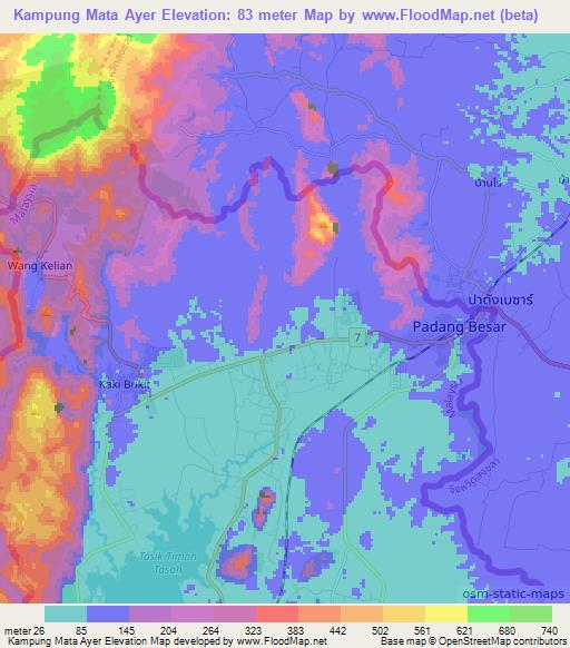 Note:Please note that Kampung Mata Ayer,Malaysia Elevation Map is in beta.