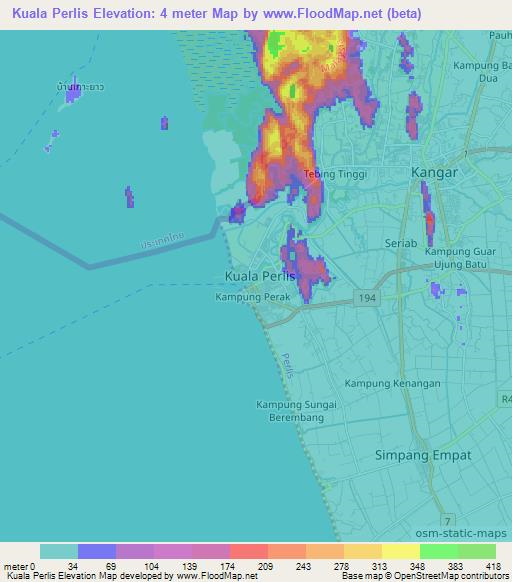 Note:Please note that Kuala Perlis,Malaysia Elevation Map is in beta.