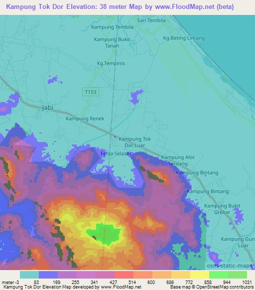 The maps also provides idea of topography and contour of Kampung Tok Dor,Malaysia.
