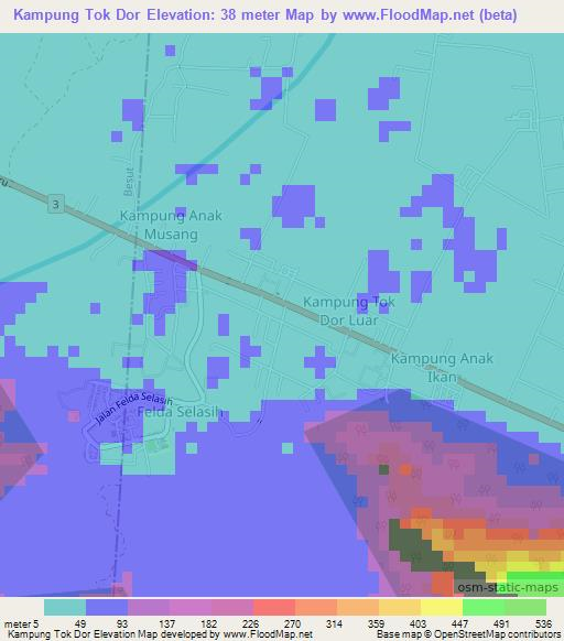 This Kampung Tok Dor,Malaysia Elevation Map is licensed under CC BY-SA.