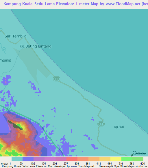 Note:Please note that Kampung Kuala Setiu Lama,Malaysia Elevation Map is in beta.