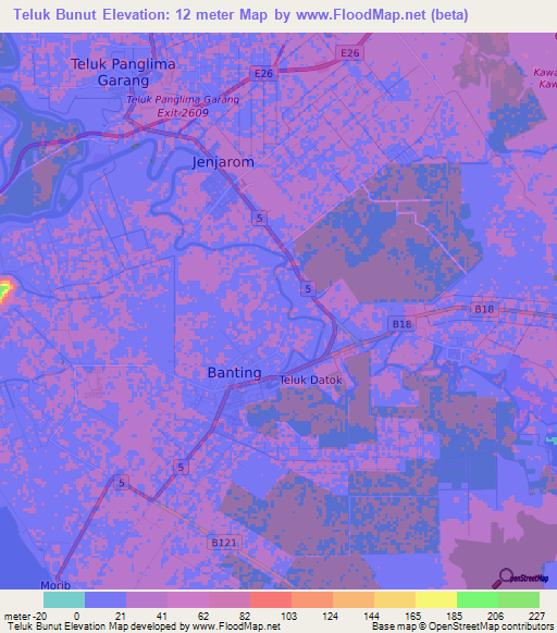 Note:Please note that Teluk Bunut,Malaysia Elevation Map is in beta.