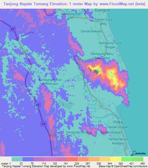 Note:Please note that Tanjong Kepala Tumang,Malaysia Elevation Map is in beta.
