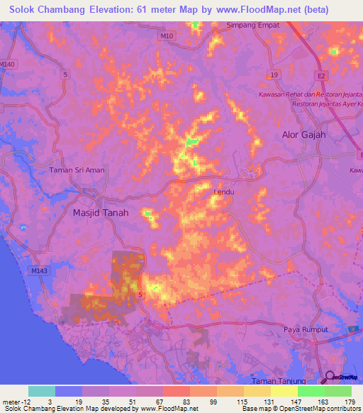 Note:Please note that Solok Chambang,Malaysia Elevation Map is in beta.