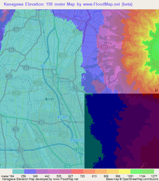 Note:Please note that Kanagawa,Japan Elevation Map is in beta.
