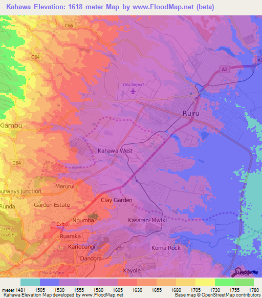 Note:Please note that Kahawa,Kenya Elevation Map is in beta.