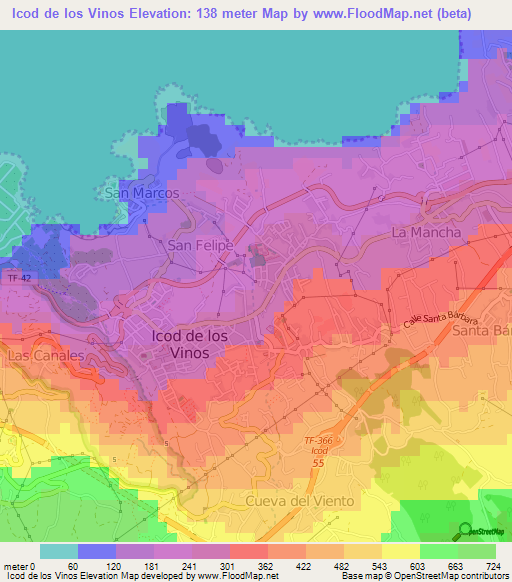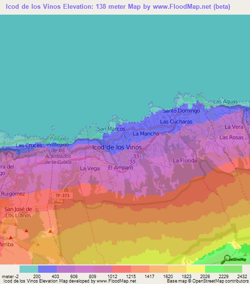 Note:Please note that Icod de los Vinos,Spain Elevation Map is in beta.