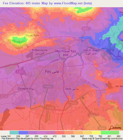 Note:Please note that Fes,Morocco Elevation Map is in beta.