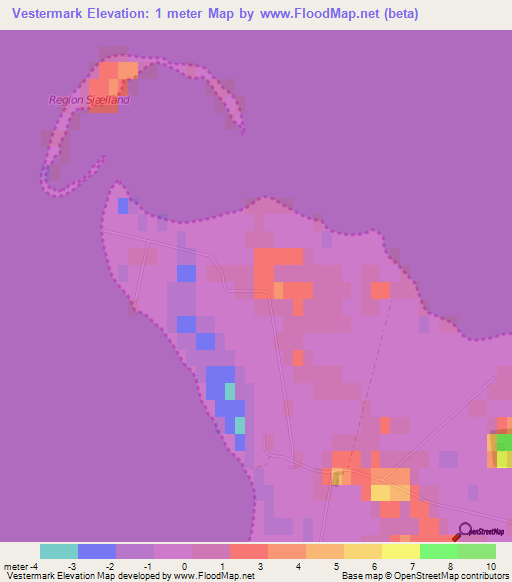 Below is the Elevation map of Vestermark,Denmark, which displays range of elevation with different colours.