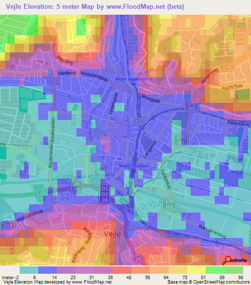 Note:Please note that Vejle,Denmark Elevation Map is in beta.