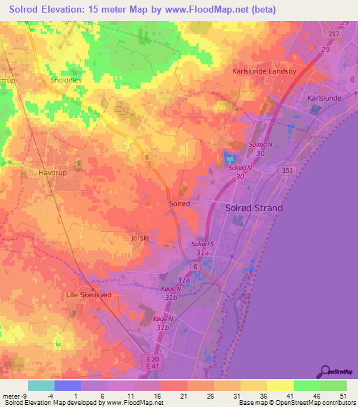 Note:Please note that Solrod,Denmark Elevation Map is in beta.