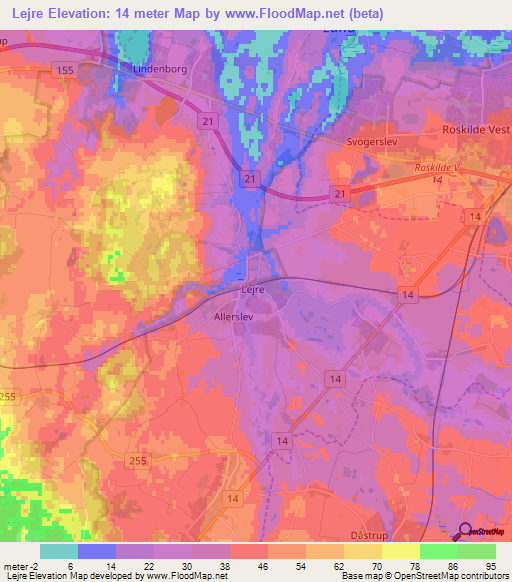 Note:Please note that Lejre,Denmark Elevation Map is in beta.