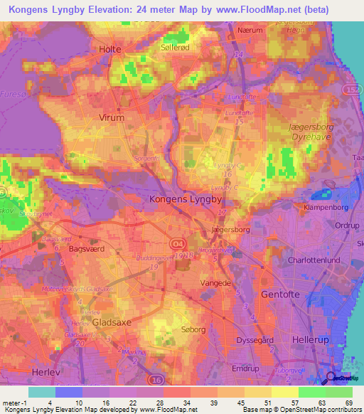 Note:Please note that Kongens Lyngby,Denmark Elevation Map is in beta.
