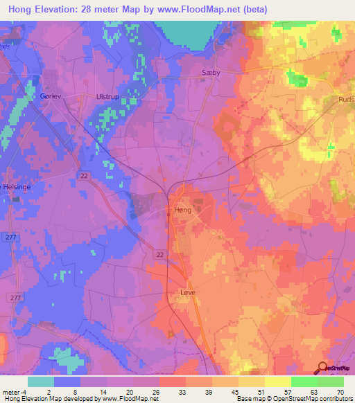 Note:Please note that Hong,Denmark Elevation Map is in beta.