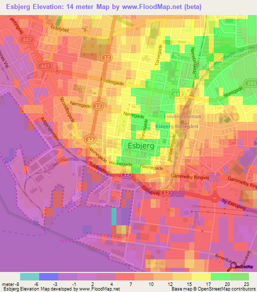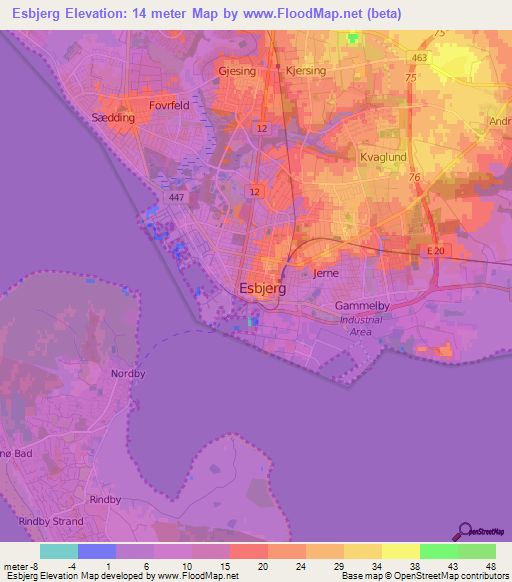 Note:Please note that Esbjerg,Denmark Elevation Map is in beta.