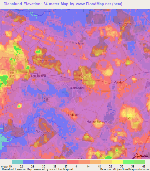 Note:Please note that Dianalund,Denmark Elevation Map is in beta.