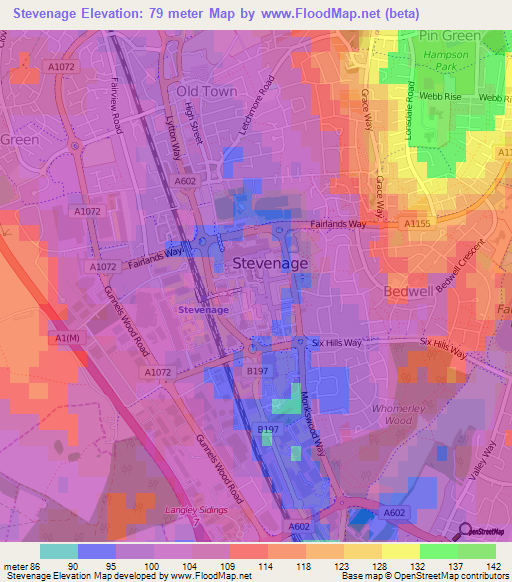 Note:Please note that Stevenage,UK Elevation Map is in beta.