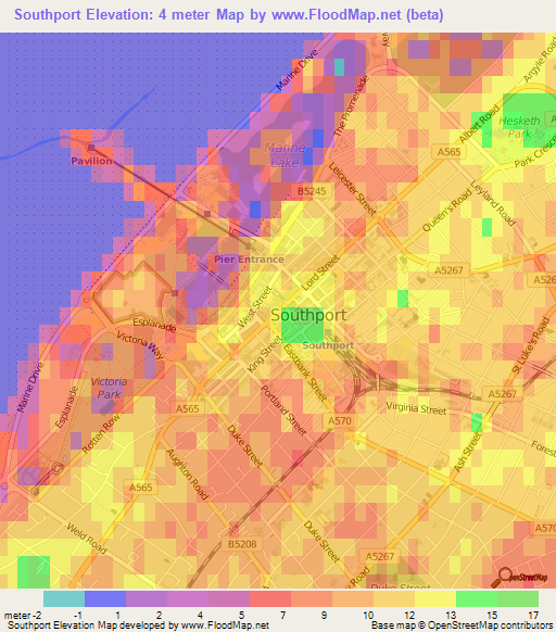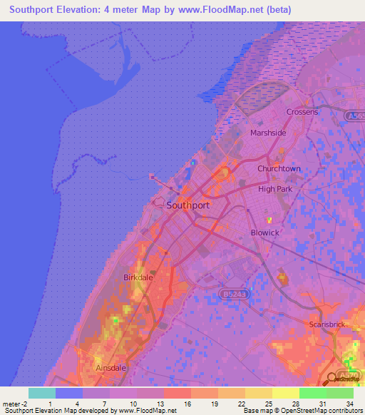 Note:Please note that Southport,UK Elevation Map is in beta.