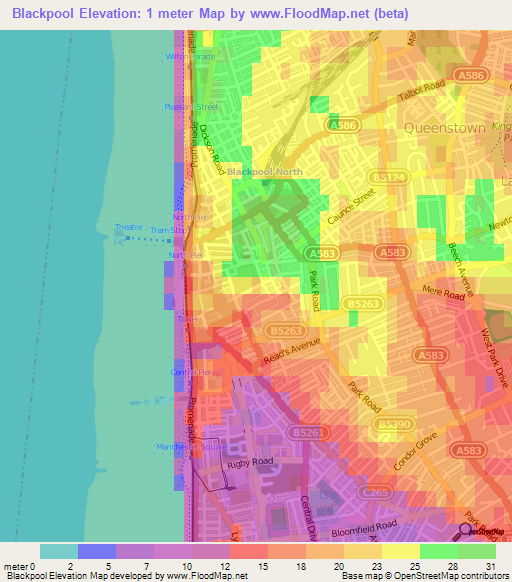 Note:Please note that Blackpool,UK Elevation Map is in beta.