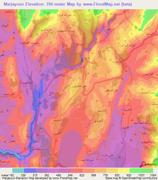 Note:Please note that Marjayoun,Lebanon Elevation Map is in beta.