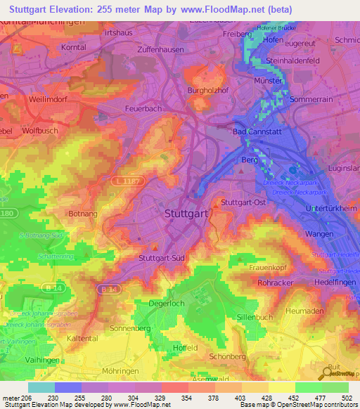 Note:Please note that Stuttgart,Germany Elevation Map is in beta.