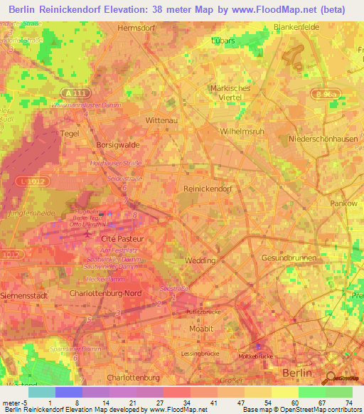 Note:Please note that Berlin Reinickendorf,Germany Elevation Map is in beta.