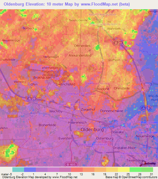 Note:Please note that Oldenburg,Germany Elevation Map is in beta.