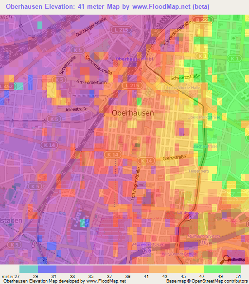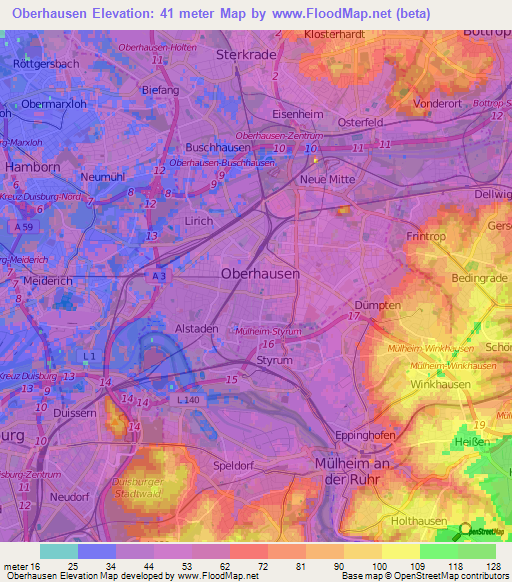 Note:Please note that Oberhausen,Germany Elevation Map is in beta.