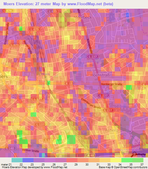 Note:Please note that Moers,Germany Elevation Map is in beta.
